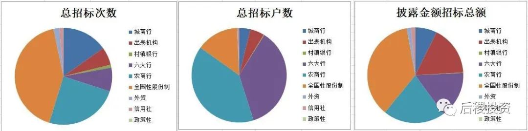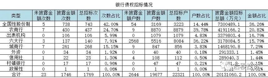 從招標次數(shù)上看,12家全國性股份制銀行最多,占了總招標次數(shù)的42%,農(nóng)商行和城商行次數(shù)也均占10%以上。但從戶數(shù)上看則是農(nóng)商行和六大國有銀行(新增郵儲銀行,但未見郵儲銀行的招標記錄),占比39.78和36.22%。六大行的債權(quán)招標戶數(shù)中未透露金額的比例較高的原因,是因農(nóng)行廣東分行在5月份發(fā)布了一次大批量債權(quán)的處置公告,未透露債權(quán)數(shù)額。從金額占比上看,全國性股份制銀行招標總額占比最多,農(nóng)商行排第二,而銀行出表機構(gòu)的公告數(shù)據(jù),則不太好歸類的具體哪一類銀行中去,但應(yīng)當以六大行為多。