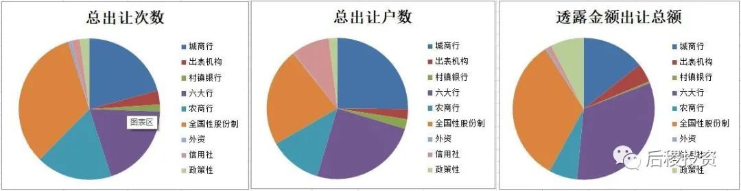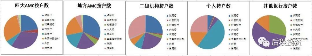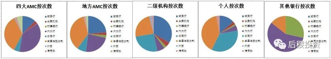 按戶數(shù)看,持牌AMC從各類型的銀行的受讓比例與受讓次數(shù)呈正比,城商行、全國性股份制銀行和國有六大行占了戶數(shù)的絕大多數(shù),而二級機構(gòu)和自然人則從信用社受讓的戶數(shù)比例較高,這也是符合市場特征的。
