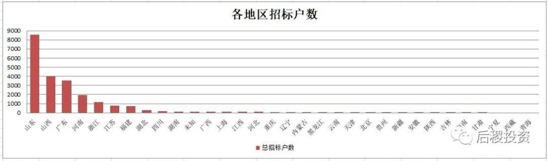 月度招標次數(shù)圍繞月150次上下浮動,而戶數(shù)圍繞月2000戶左右浮動,金額曲線區(qū)間的中線則為月150億元左右。4月和11月為招標的高峰期,這與實際市場表現(xiàn)契合。