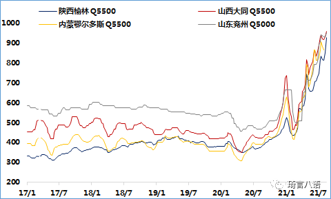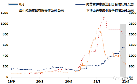 第三,8月煤價突破季節性限制,強勢上漲,9、10月份冬儲需求旺盛,煤價大幅下跌概率不大: