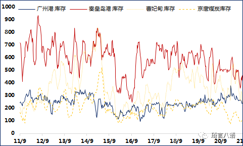 第二,老話長談,各口徑庫存數據仍處于低位,且全年低庫存狀態可能導致下游電廠的冬儲需求前置: