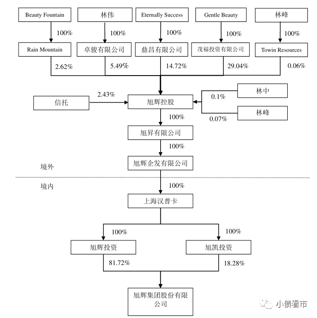 從股權結構看,旭輝控股集團的控股股東為茂福投資有限公司,公司實控人為林中、林偉和林峰三兄弟。