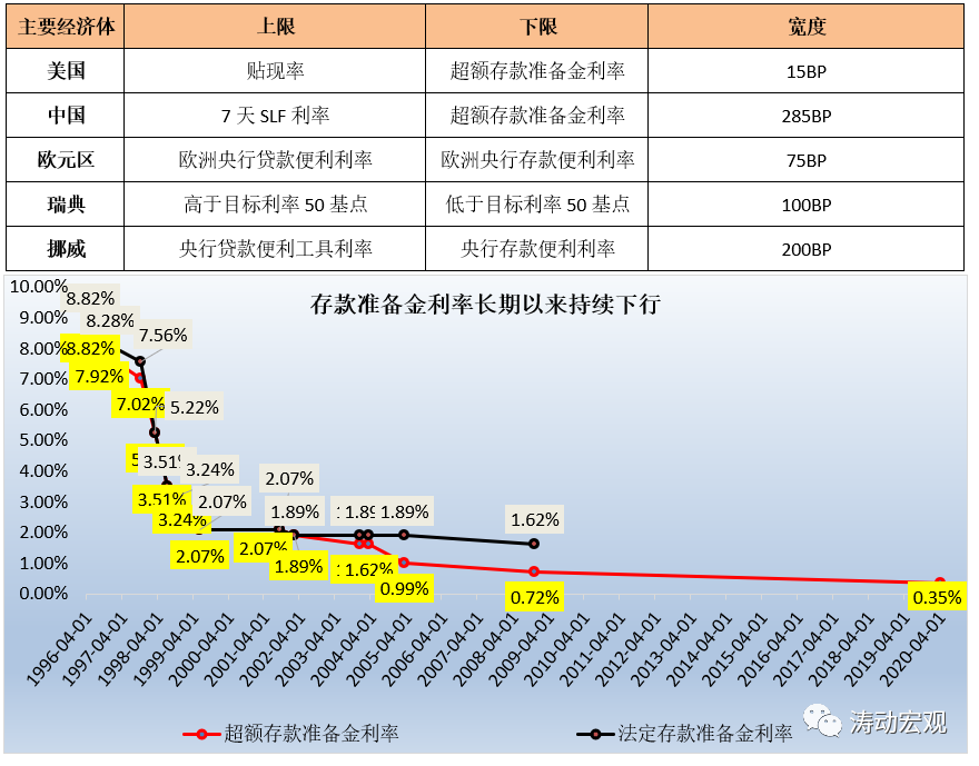 3、對(duì)于中國(guó)而言,也有自己的利率走廊區(qū)間,上限和下限分別為SLF利率和超額存款準(zhǔn)備金利率。2020年4月3日,央行決定自4月7日起將金融機(jī)構(gòu)在央行超額存款準(zhǔn)備金利率從0.72%下調(diào)至0.35%,這是自2008年以來(lái)首次下調(diào)超額存款準(zhǔn)備金利率,意味著中國(guó)利率走廊已拓寬至0.35%-3.20%(利率走廊的寬度達(dá)到285BP)。