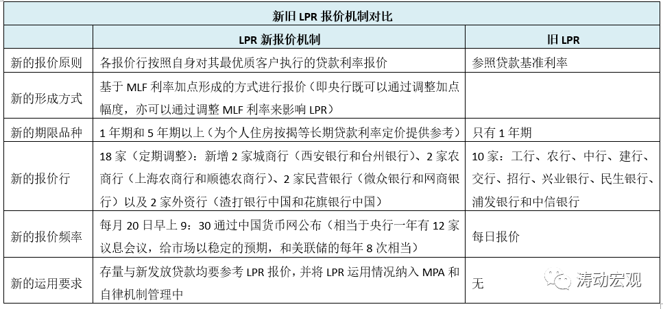和2013年推出的LPR相比,LPR新報(bào)價(jià)機(jī)制有諸多創(chuàng)新之處,主要體現(xiàn)在報(bào)價(jià)原則(基于最優(yōu)客戶(hù))、形成方式(MLF加點(diǎn))、期限品種(1年和5年以上)、報(bào)價(jià)行(數(shù)量更多且類(lèi)型更豐富)、報(bào)價(jià)頻率(固定于每月20日)以及新的運(yùn)用要求(通過(guò)MPA和自律機(jī)制管理)來(lái)強(qiáng)化約束等方面。