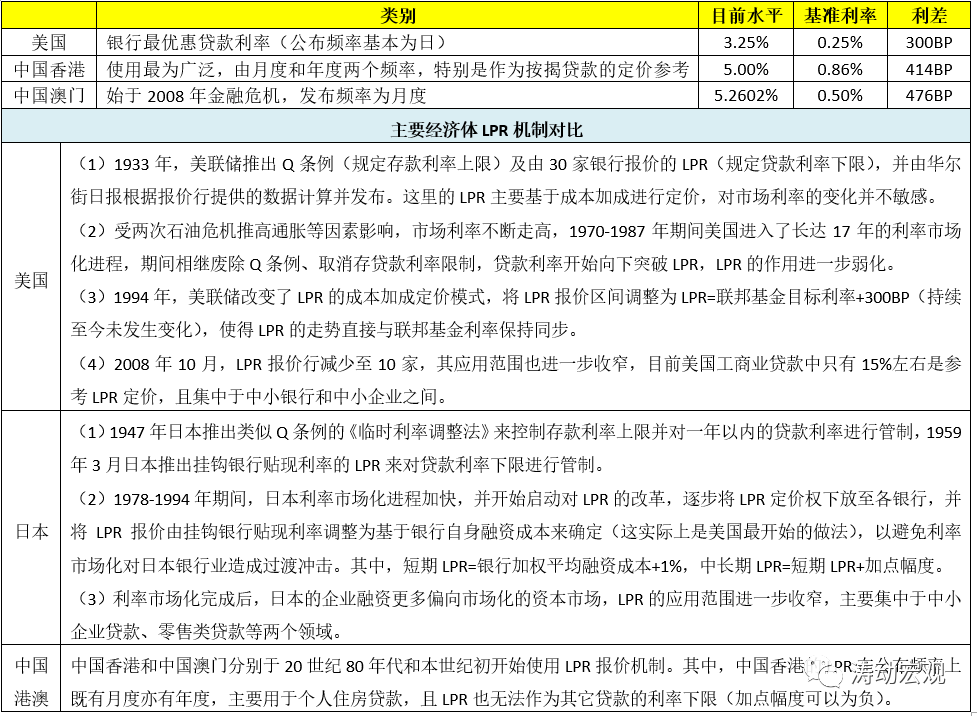 (三)美國(guó)、日本以及中國(guó)港澳等主要經(jīng)濟(jì)體LPR機(jī)制對(duì)比