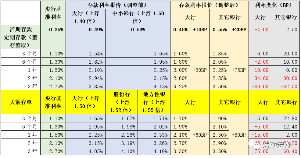 和LPR新報(bào)價(jià)機(jī)制不同的是,此次存款利率報(bào)價(jià)方式調(diào)整并未取消存款基準(zhǔn)利率,而是在存款基準(zhǔn)利率基礎(chǔ)上的調(diào)整,且針對(duì)國(guó)有大行和其它行采取了不同的調(diào)整幅度,這大概說(shuō)明兩個(gè)問(wèn)題: