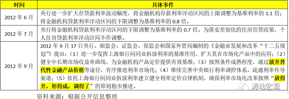 應(yīng)該說(shuō)2012年既是金融業(yè)新一輪創(chuàng)新開(kāi)啟之年,也是利率市場(chǎng)化再次進(jìn)入破冰期的起始之年,在2012年6月和7月先后擴(kuò)大存貸款基準(zhǔn)利率的波動(dòng)幅度之后,2012年9月17日一行三會(huì)一局對(duì)下一階段的利率市場(chǎng)化提出了五點(diǎn)要求,這五點(diǎn)要求也成為了利率市場(chǎng)化新一輪改革進(jìn)程的主要思路。