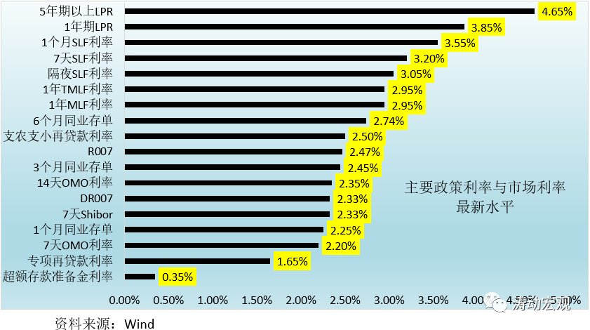 其中,政策利率以O(shè)MO利率和MLF利率為代表,市場(chǎng)利率以DR007為主。