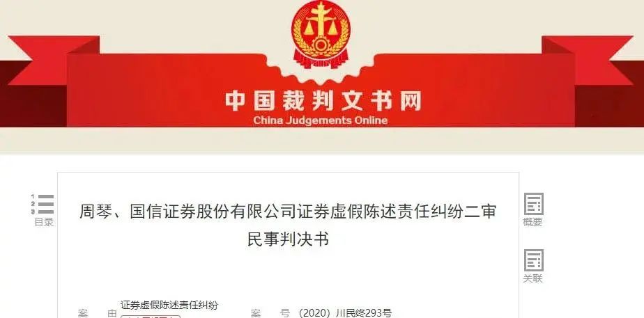 來自中國裁判文書網的消息,證明了此次案件的落地。關于該案件的審判,最大的看點來自保薦機構和中間機構所承擔的連帶賠償責任的比例問題。上市公司虛假陳述遭起訴,保薦機構和中介機構在二審中被判定均承擔100%的連帶賠償責任。