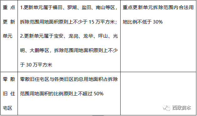 城市更新單元內,擬拆除重建范圍用地面積大于城市更新單元總用地面積的70%,原則上不得包含未建設用地。拆除范圍用地面積原則上大于10000平方米。拆除重建類城市更新項目擬拆除范圍用地面積的基本要求具體如下: