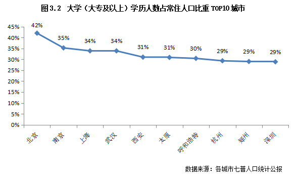 1.2京寧滬漢高學歷人口占比領先,大學生人口占比均超三成