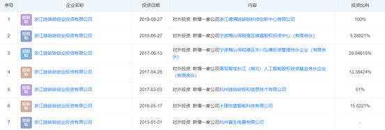 實際上,娃哈哈創投成立已有十余年。根據公開資料顯示,娃哈哈創投早在2010年11月8日就已成立。從2016年至今,娃哈哈創投共進行過6次對外投資,包括投資寧波梅山保稅港區祺睿股權投資中心、高瓴智成長江人工智能股權投資基金合伙企業等。