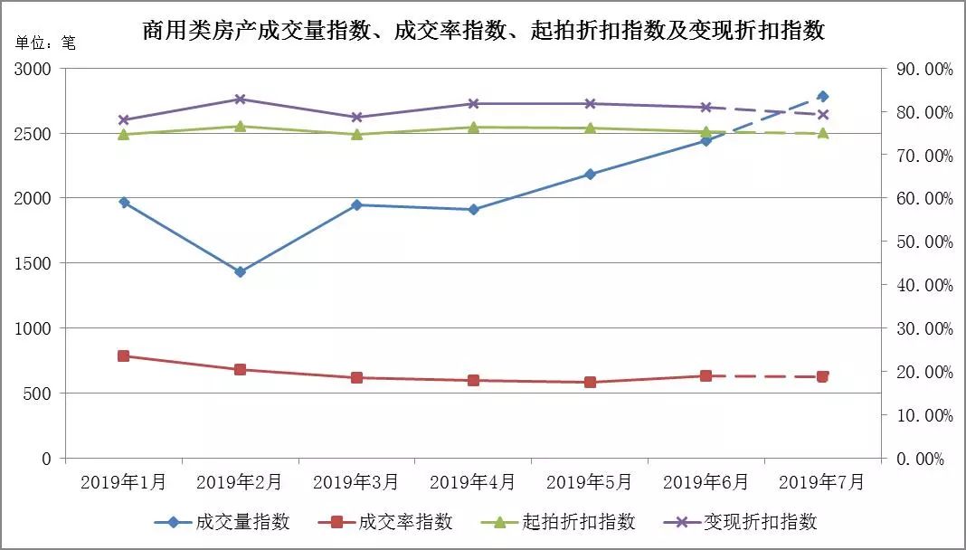 (一) 商用類房產:成交量持續上升,成交率小幅增長,起拍折扣指數、變現折扣指數保持平穩