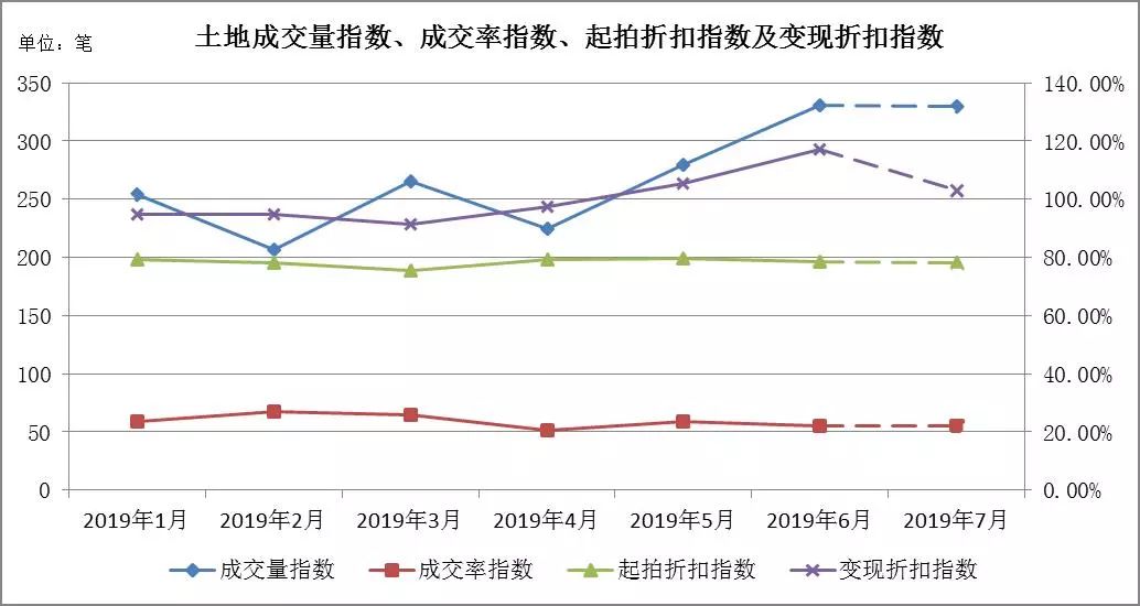 七月預測:成交量在299至348筆左右,成交率指數區間[30.56%,33.42%],起拍折扣指數區間[73.01%,74.64%],變現折扣指數區間[86.01%,91.91%]。