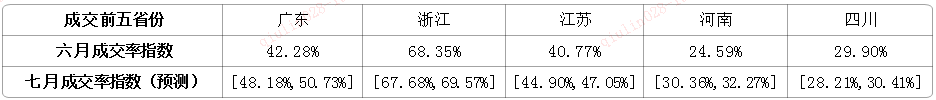 (二) 成交率指數:前五省成交率均明顯下降