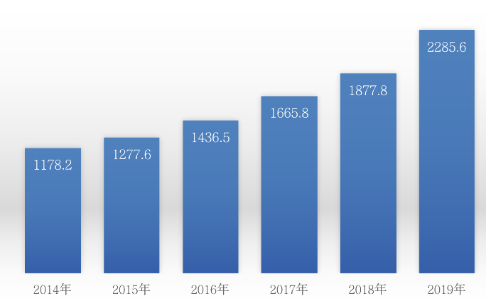 圖:2014年~2019成都高新區(qū)GDP(億元)