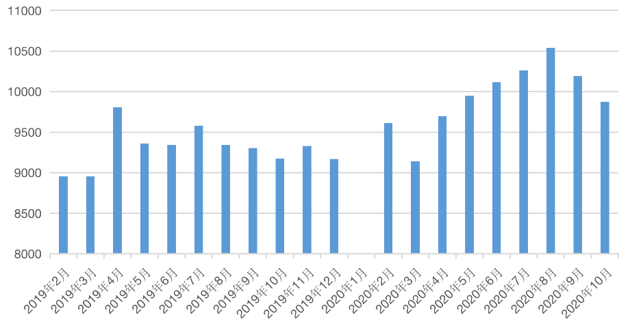 根據(jù)全國商品房銷售面積、銷售金額測算,10月商品房銷售均價為9875元/平方米,同比上升5.8%,環(huán)比下降約2%。這是繼6月以來全國商品住宅單月成交均價首次跌破萬元以下。