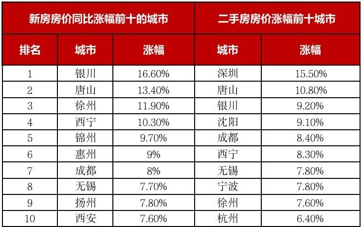 從二手房來看,深圳以0.9%的環(huán)比漲幅領(lǐng)跑二手房價,但這一數(shù)字也創(chuàng)下了今年3月以來的新低。此外,銀川、揚(yáng)州、沈陽分別以0.8%的漲幅緊隨其后。