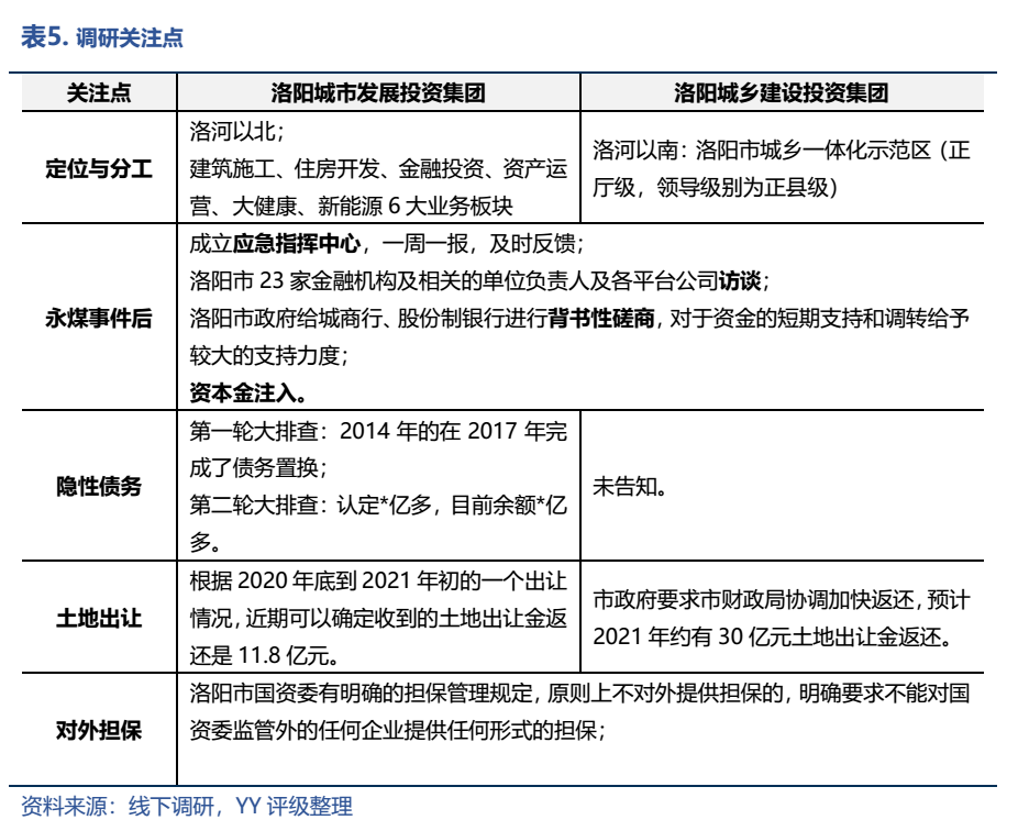 本次調(diào)研了洛陽的兩大市級平臺:洛陽城市發(fā)展投資集團和洛陽城鄉(xiāng)建設投資集團。兩家平臺資質(zhì)相對較好,市場認可程度尚可。
