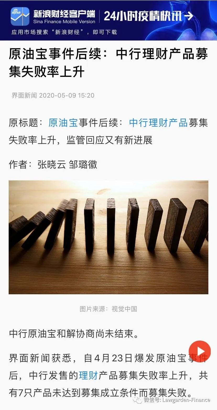 事實(shí)上,金融機(jī)構(gòu)在注重業(yè)務(wù)增長(zhǎng)的同時(shí),也應(yīng)給與消費(fèi)者權(quán)益保護(hù)同等重視。金融消費(fèi)者乃金融機(jī)構(gòu)之衣食父母,正所謂“水能載舟,亦能覆舟”。當(dāng)某行還在為蠅頭小利與客戶掰扯賠償比例的時(shí)候,殊不知該行理財(cái)產(chǎn)品的募集失敗率正在上升,據(jù)界面新聞?dòng)浾甙l(fā)現(xiàn),自4月23日爆發(fā)原油寶事件后,該行共有7只產(chǎn)品未達(dá)到募集成立條件而募集失敗,在該新聞評(píng)論區(qū),更有留言稱已將在該行的存款轉(zhuǎn)移至其他銀行。一起消費(fèi)者保護(hù)事件,可能引致整個(gè)公司信用的喪失。