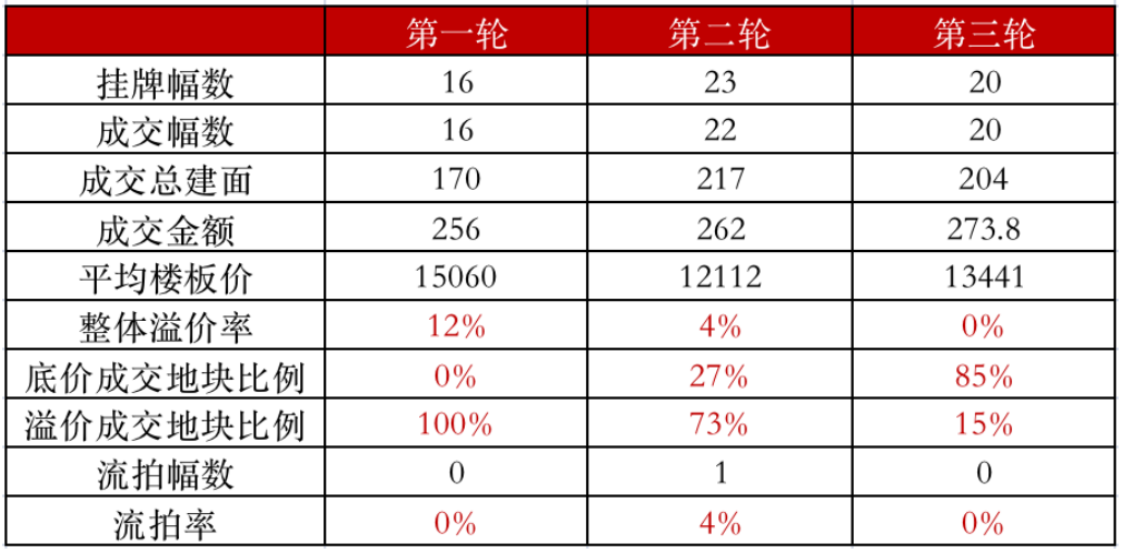 表:無錫第三輪集中土拍與一、二輪成交情況對(duì)比