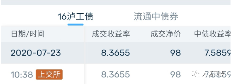 再來(lái)看個(gè)例子,16瀘工債(136343),發(fā)行人瀘州市工業(yè)投資集團(tuán)有限公司,主體評(píng)級(jí)AA,債券評(píng)級(jí)AA;正是昨天提到的《國(guó)企金控平臺(tái)》,到期日245天,當(dāng)前有成交價(jià)98,持有到期年化收益率8.3655%。