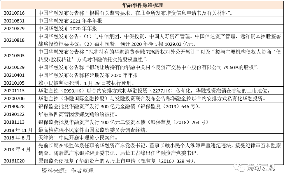 2、2021年9月16日,中國華融發布公告稱其已于北金所發布增資信息申請書及有關材料,意味著中國華融引進戰略投資者將進入實質階段。