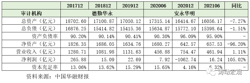 2020年底華融資產的資本充足率由2020年6月的15.65%大幅降至4.16%,雖然今年6月底回升至6.32%,但仍然遠遠低于12.50%的監管標準(金融AMC的一級資本充足率與核心一級資本充足率的監管標準分別為10%和9%),因此未來面臨的另一個問題是資本的補充壓力,這也是華融資產引進戰略投資者的背景。