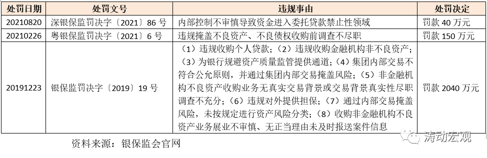 2、監管部門對華融資產的處罰也可以窺測一二