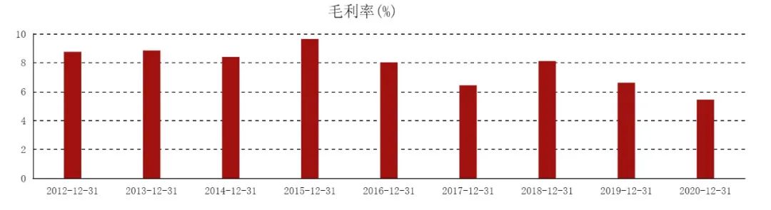 但利潤率卻不盡人意:凈利率僅3.92%;毛利率為12.5%,同比下滑8.77個百分點,相對于同等規模的企業而言已居于末位水平。