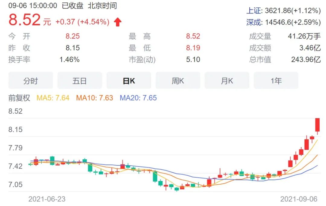 大概在8月底,該司半年報發布前后,其股價就一直在漲。到了今天,已經第8個交易日,仍然持續飄紅,且漲得更猛烈。