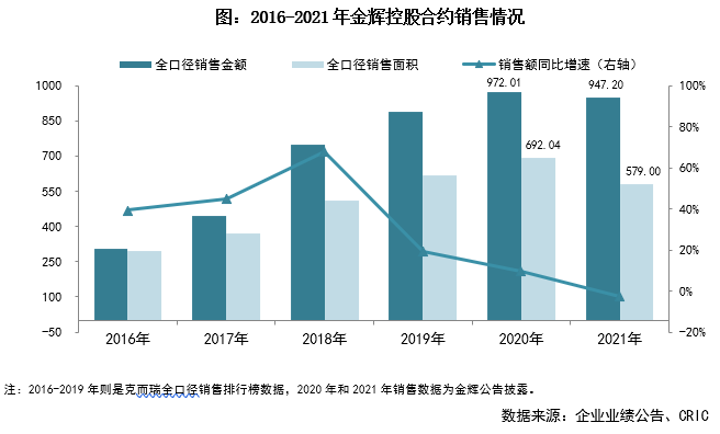 2021年金輝實現全口徑合同銷售額947.2億元,其中,上半年實現銷售額557.7億元,完成全年業績的58.88%;受下半年調控政策升級影響其銷售額出現下滑,7-9月平均月銷售額從2021上半年的92.95億元下滑至58.6億元,進入四季度金輝加速搶收,10月起銷售觸底反彈,10-12月的平均月銷售額恢復至71.23億元。