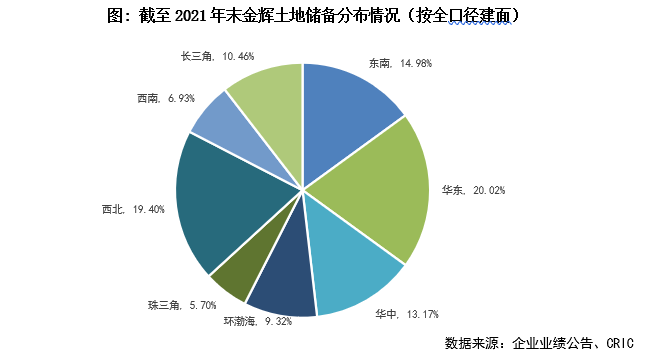 【土地儲備可供4-5年的發展需求,未來投資趨于審慎】2021年金輝投資相對理性,全年拿地銷售金額比0.25,上下半年相對均衡(上半年:0.26,下半年0.23),納儲態度與TOP31-50同梯隊房企持平,拿地強度控制在40%的政策紅線內,投資量入為出、嚴控現金流安全。下半年部分城市土拍溢價率回落,金輝適當提升權益比,下半年權益拿地支出67.79億元(占全年的43%),按金額計拿地權益比升至74%(2021H:61%)。截至2021年末金輝土地儲備3319.48萬平(+8%),按面積計土儲權益比達76%,可保障未來4-5年的發展需求,土儲較為充裕,年報展望中金輝表示未來投資或將審慎。
