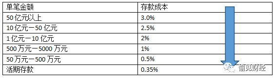 所以顯然的,就是存款金額越小,期限越不固定,對(duì)于銀行而言成本越低,簡(jiǎn)稱“便宜錢”,反之單筆額度越大,成本越高,簡(jiǎn)稱“貴錢”。