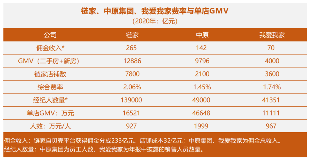 中原集團(tuán)單店的GMV更高,但綜合費(fèi)率更低,推測應(yīng)該有較多的新房代理業(yè)務(wù),量大價低。