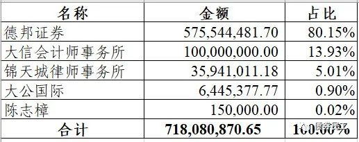 3、大公國際雖然被判在10%范圍內承擔連帶責任,但是最終履行金額占比只有0.90%。
