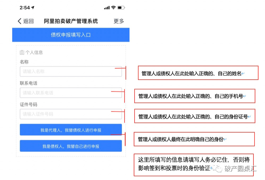 無(wú)論代理多少個(gè)債權(quán)人并填寫多少次被代理債權(quán)人的信息,代理人在此處所填寫、輸入的都應(yīng)該是自己的身份信息,系統(tǒng)在收到這些信息后會(huì)自動(dòng)將債權(quán)人信息與代理人“掛鉤”,方便代理人在債權(quán)會(huì)議中進(jìn)行線上投票;
