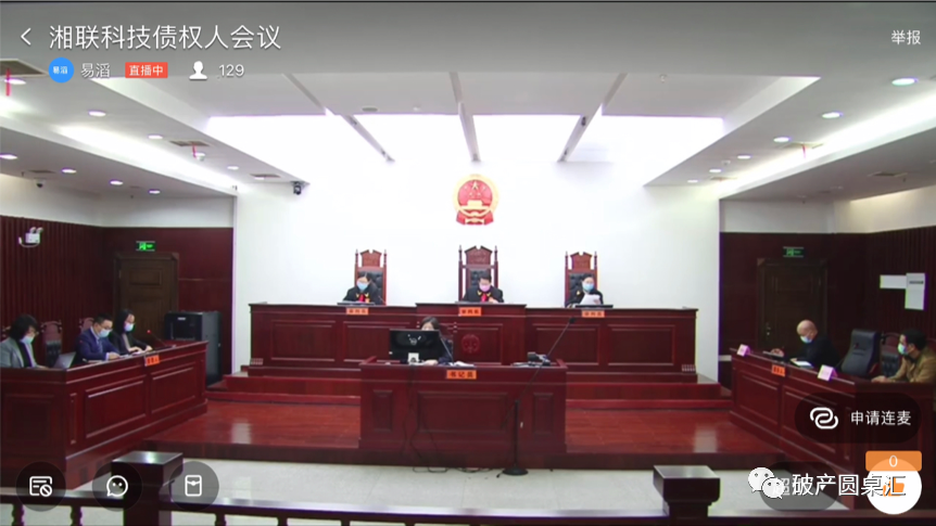 會(huì)議過程中,管理人可根據(jù)法院要求選擇是否設(shè)置群內(nèi)禁言,會(huì)議是否允許現(xiàn)場(chǎng)連麥提問,如果群內(nèi)不禁言聊天內(nèi)容會(huì)以彈幕形式出現(xiàn)在直播屏幕。