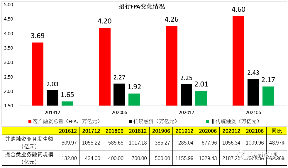 1、招行特別重視表外業(yè)務,這從FPA內涵、非保本理財以及資產托管等方面便可以看出來。2021年6月底,招行的非保本理財規(guī)模和資產托管規(guī)模分別達到25685.77億元和18.23萬億,占其總資產的比例分別達到28.91%和205.16%。