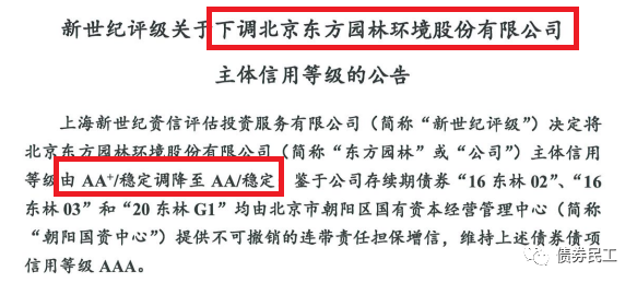2021年4月29日,上海新世紀將北京東方園林環境股份有限公司主體信用評級由AA+下調至AA。本次評級下調的主要原因是營業利潤和凈利潤下降、非公開發行優先股的批復失效、何巧女和一致行動人股份全被司法凍結及輪候凍結。