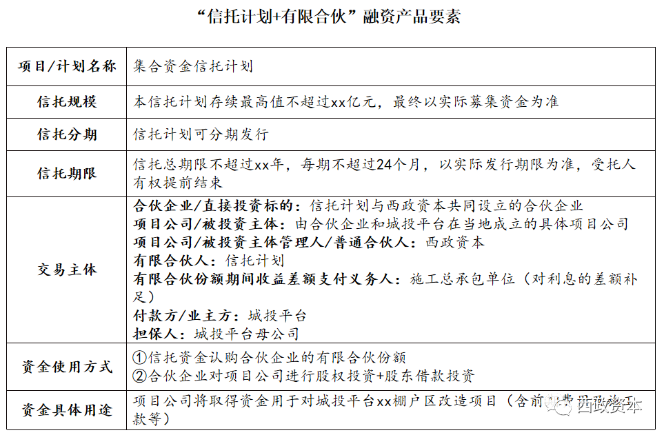 為便于說明,我們就當前正在操作的城投平臺非標融資架構做簡要說明,以供同業人士參考: