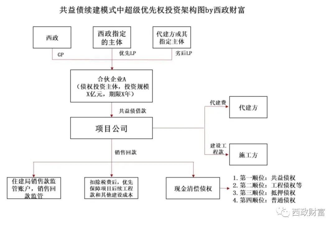 1.投資架構(gòu):西政(GP)與其指定的主體(優(yōu)先級LP)及代建方或其指定的主體(劣后級LP)共同成立合伙企業(yè)A作為超級優(yōu)先權(quán)投資主體,優(yōu)先級LP和劣后級LP按7:3的比例出資,總出資額度不超過約定金額。