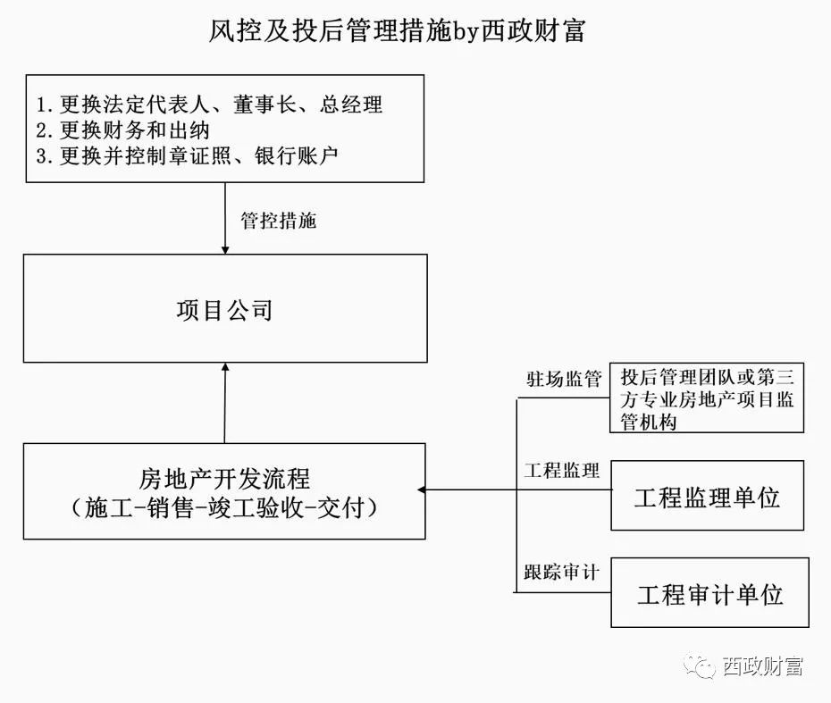 (2)投后管理團隊入駐或引入第三方監(jiān)管:為保證項目正常開發(fā)、防止資金挪用等,由超級優(yōu)先權(quán)投資主體聘請第三方專業(yè)的房地產(chǎn)項目監(jiān)管機構(gòu)實施項目現(xiàn)場監(jiān)管,包括:監(jiān)管章證照、賬戶和資金支出和收入監(jiān)管、成本合約監(jiān)管、現(xiàn)場工程進度和工程款支付監(jiān)管、銷售情況和銷售回款監(jiān)管等。