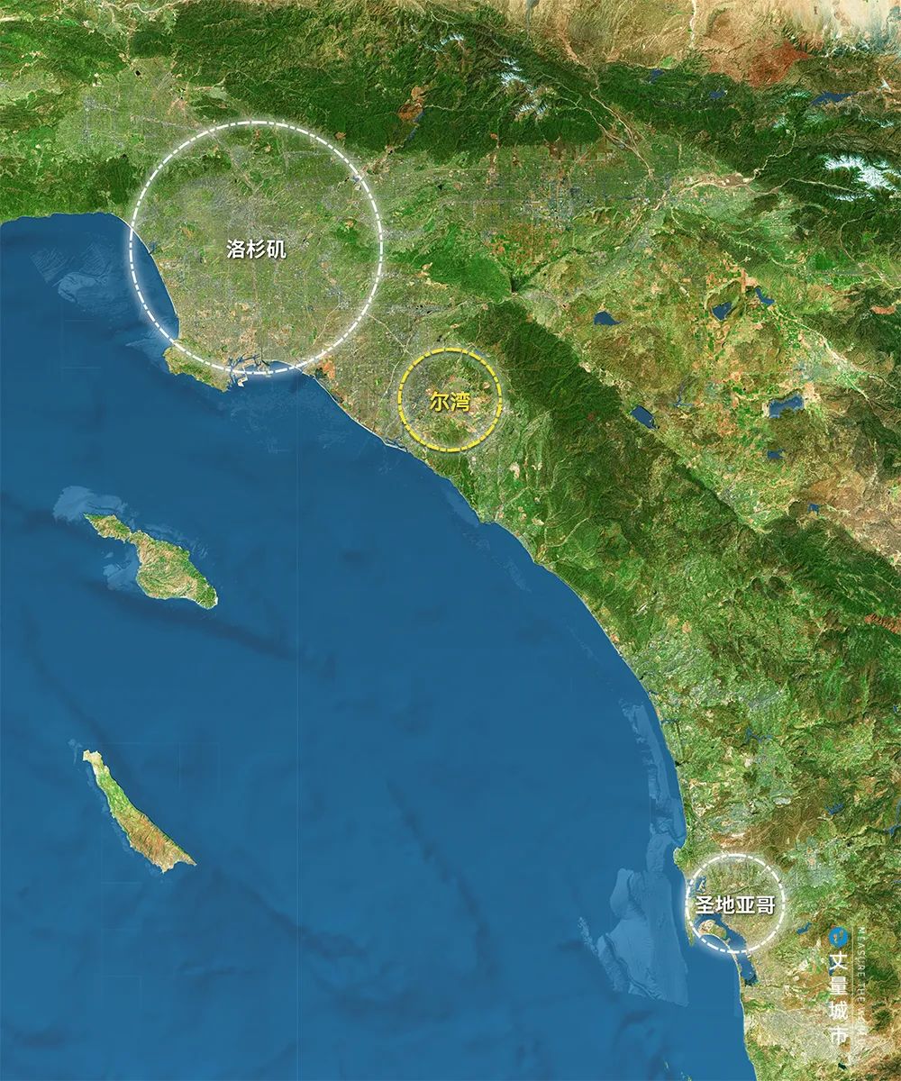 爾灣位于美國西海岸加利福尼亞州南部,處于加州兩大城市洛杉磯與圣地亞哥之間。距離洛杉磯市中心和洛杉磯國際機(jī)場約70公里,距離圣地亞哥140公里,是洛杉磯大都市圈重要的組成部分。行政上隸屬于橘郡,與我國的「縣、區(qū)」屬相同級(jí)別。