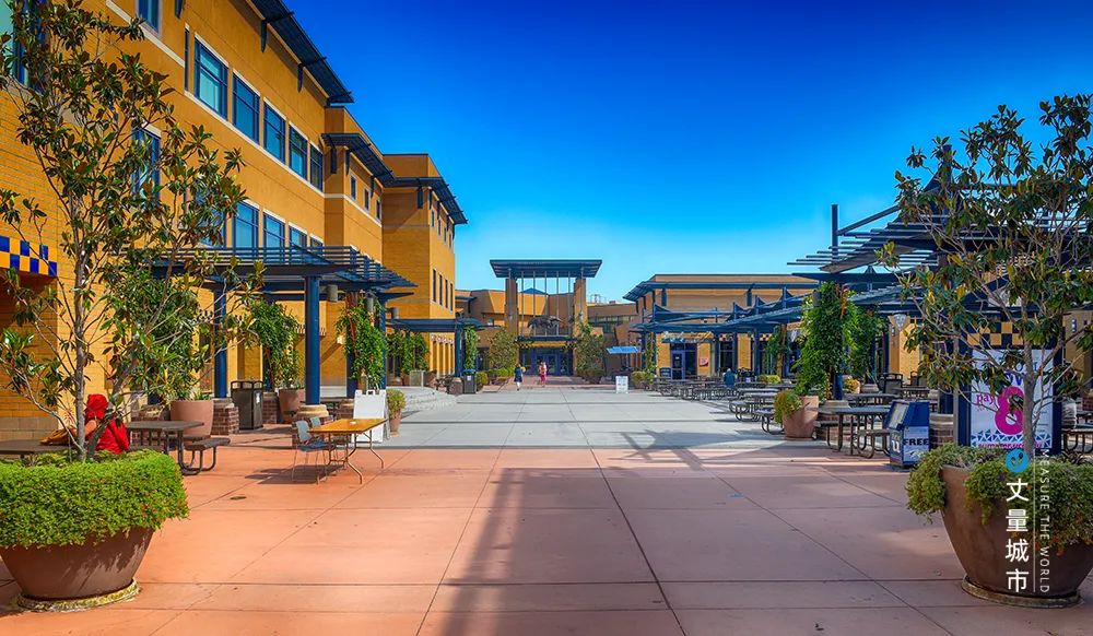 ▼ 加州大學(xué)爾灣分校東北側(cè)的大學(xué)購物中心