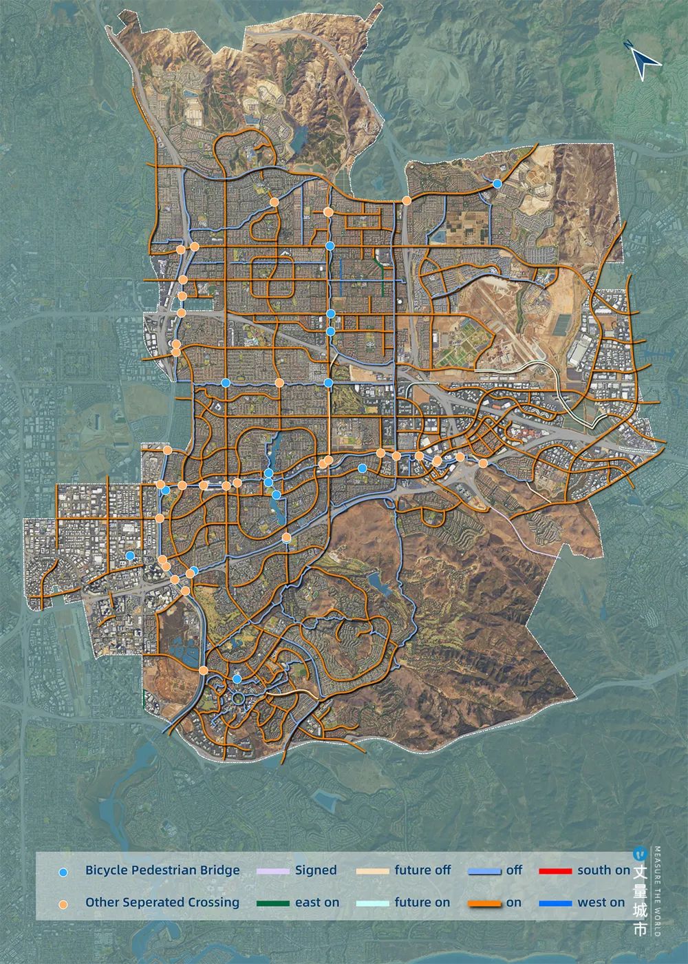爾灣非常鼓勵(lì)乘坐公共交通、步行等綠色出行方式,以達(dá)到節(jié)能減排的目的,并特地為此建設(shè)了完善的世界級(jí)自行車道和步道系統(tǒng)。