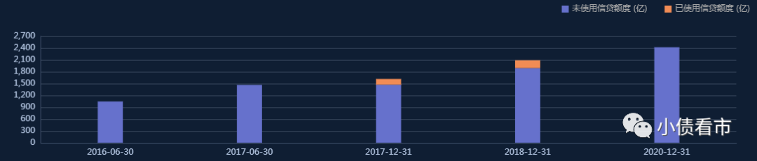 在備用資金方面,截至2020年末,遠洋集團未使用銀行授信額度還有2421.5億,可以看出其財務彈性較好。