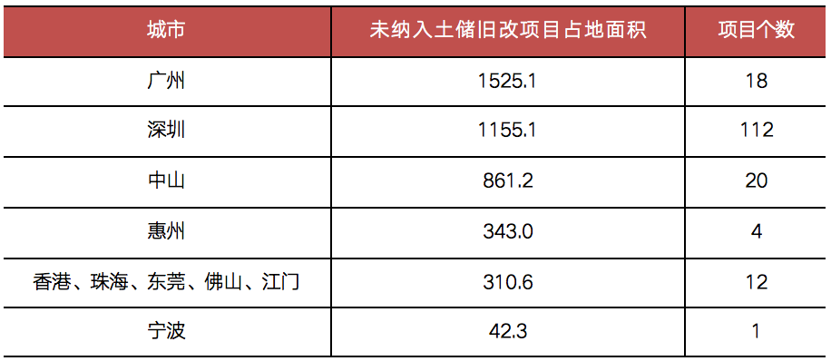 佳兆業(yè)未納入土儲的舊改項目情況(萬平方米)