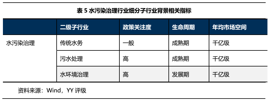 水污染處理所屬的環保行業公用事業屬性較強,受政策影響較大,行業背景決定了主體融資的難易程度、市場的需求情況等主體經營的關鍵因素。我們可以從政策關注度、細分行業的生命周期及市場空間來對主體的行業背景進行分析。