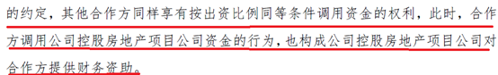 對于表外的合聯(lián)營項目,看合作方是誰也是很重要的。如果是正常的知名房企,則是比較正常的合作,操作空間比較小;如果是當?shù)氐男〉禺a(chǎn)商等,則有較大空間可以通過收購股權(quán)、修改公司章程來操控項目公司是并表還是放在表外,從而達到“調(diào)控”表內(nèi)有息債務(wù)的目的。